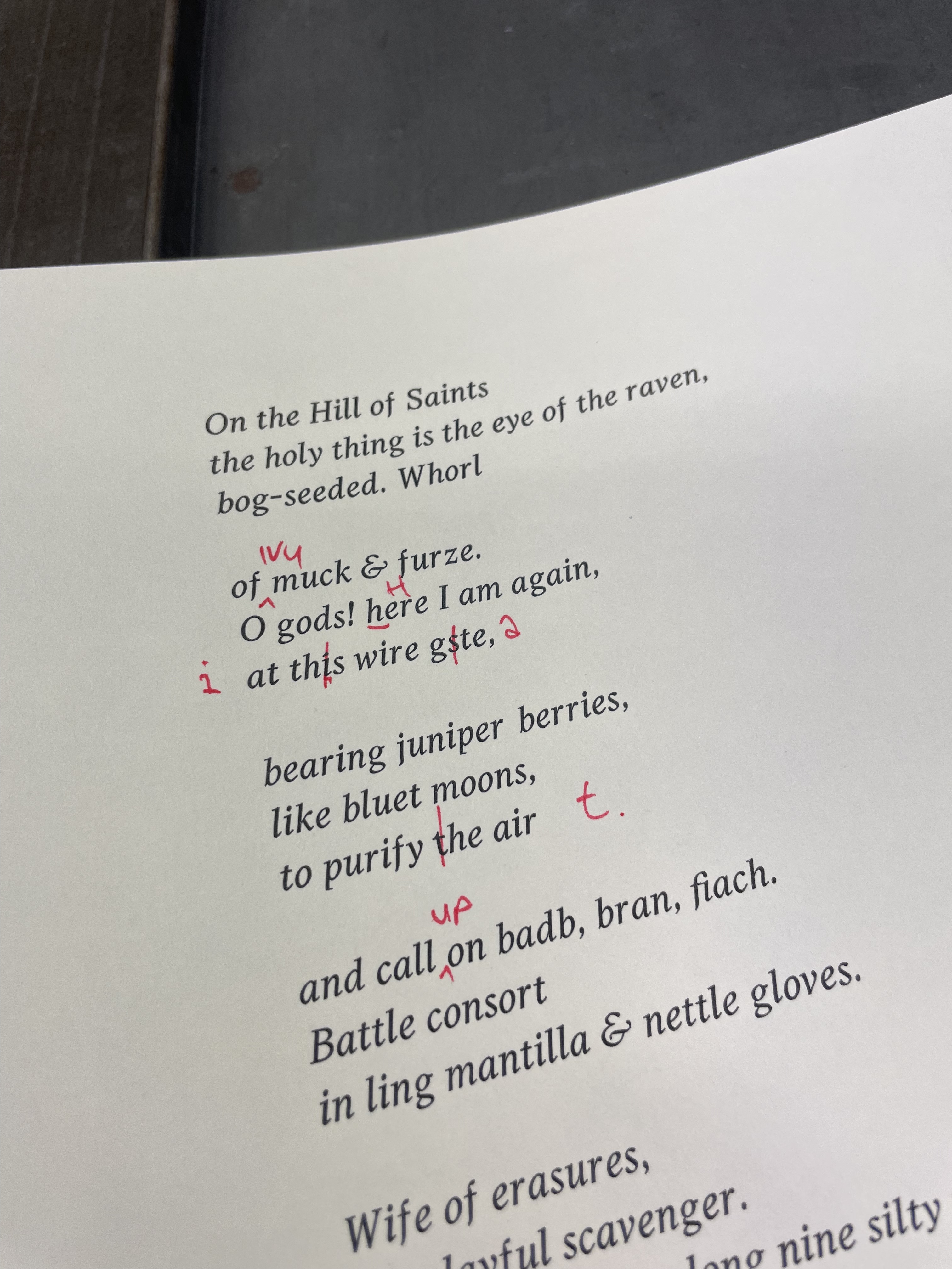 Fast forward five years, a worldwide plague event, a pretty intense period of hiatus (Haiku na Feirme, Grief's Broken Brow, Memento Civitatem, (S)worn State(s), Carbon), and we were ready to take the texts to print. In the years that had passed we unfortunately lost three voices from the project, for a variety of reasons, and so seven remained; Annemarie Ni Churreáin (Town, (S)worn State(s)), John FitzGerald (Darklight, Haiku na Fierme), Supriya Kaur Dhaliwal, Elaine Feeney, Eleanor Hooker, Gerard Smyth (We Like it Here Beside The River, After Easter) and Jessica Traynor (Liffey Swim, A Modest Proposal, Carbon).