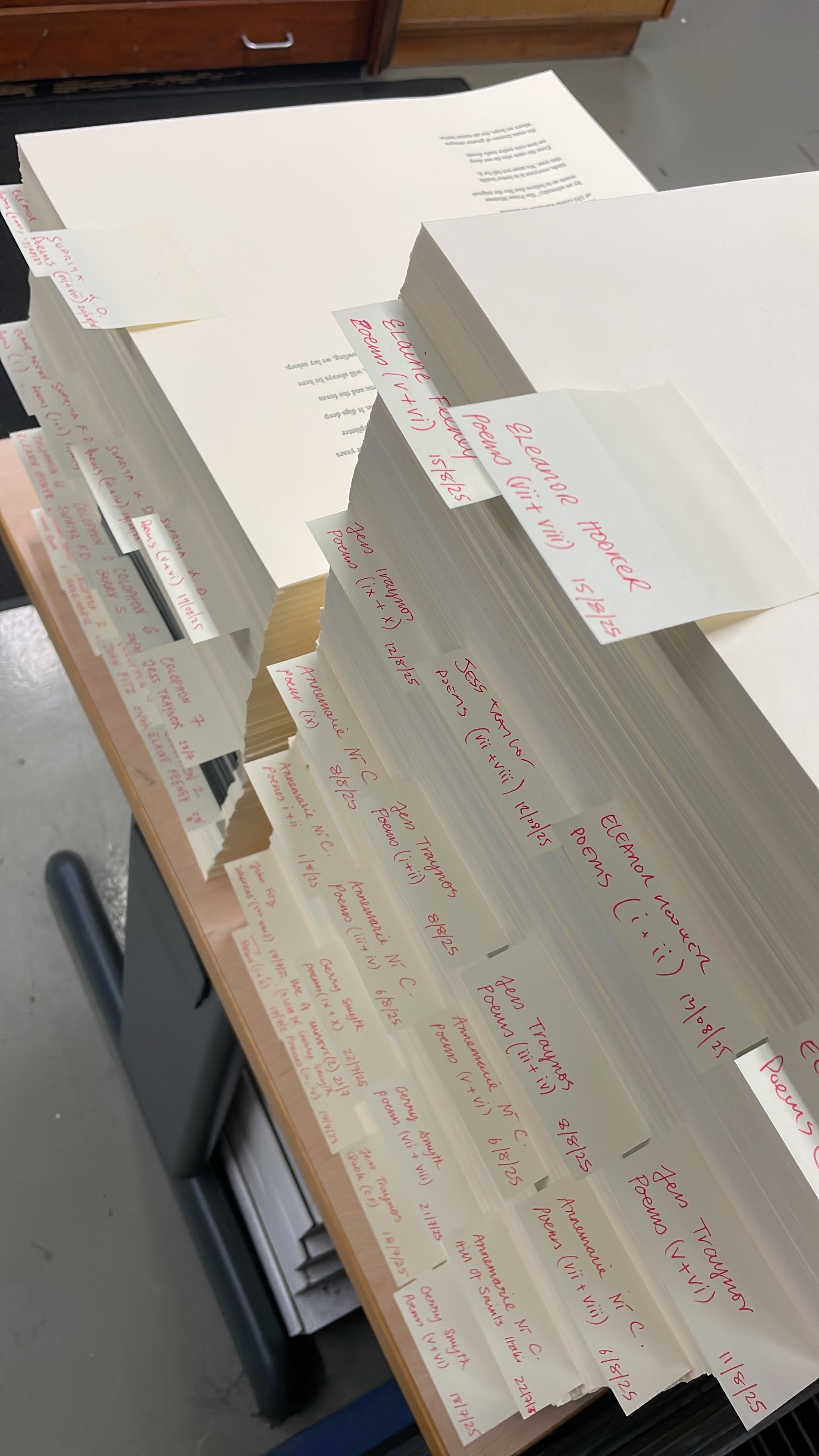 We spent the summer of 2025 printing and binding the texts and are now concentrating on achieving the dust jackets and the enclosures. More on that soon. Plague Poems will launch this year, quite possibly early summer. The pre-publication price is €779, the book will launch at €979. Please get in touch to reserve your copy at the early discounted price.