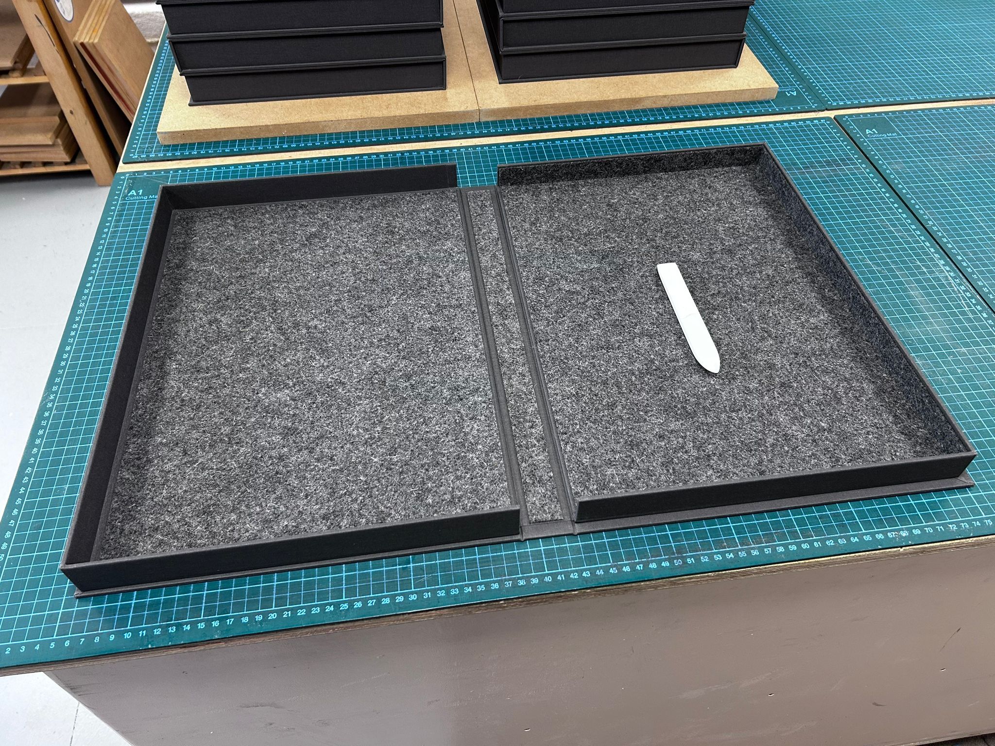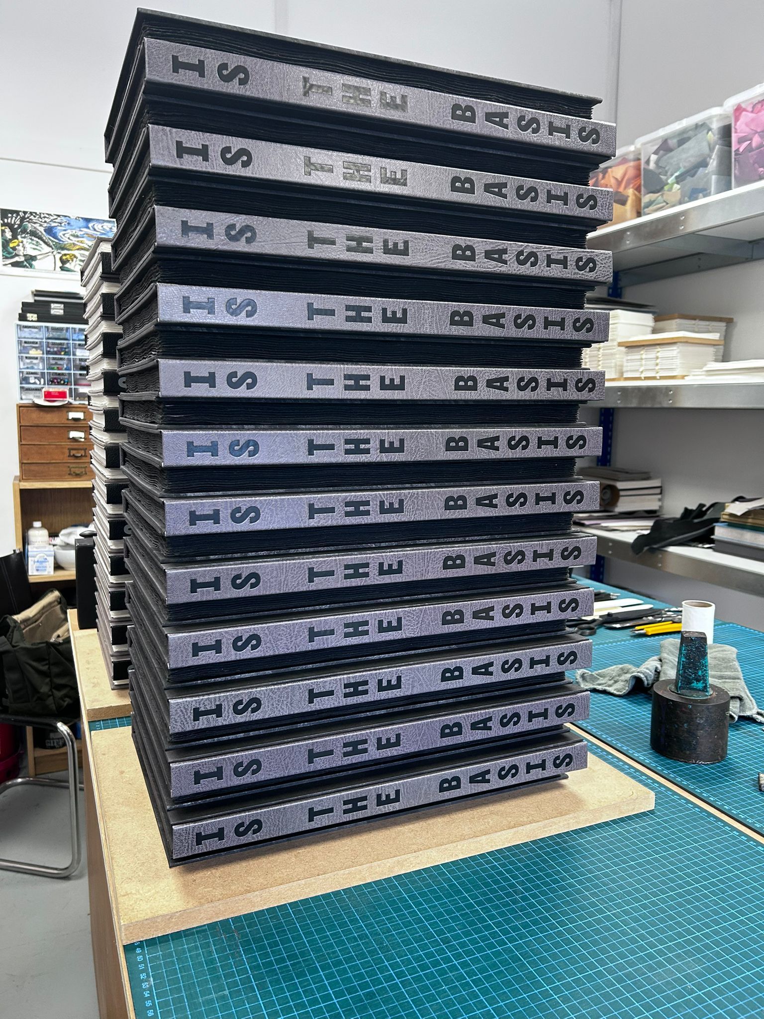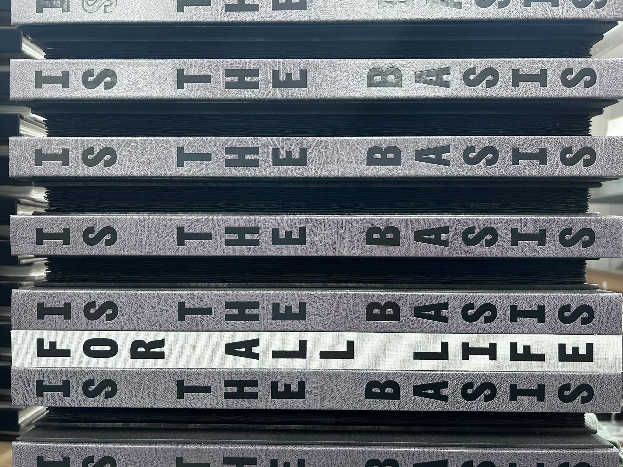 80 books will be bound by Marc Hammonds. 54 numbered copies on 200gsm handmade paper from the Losiny mill in goat & carbon painted paper over boards, housed in a solander box. 26 lettered copies on 200gsm Losiny handmade, bound in full (carbon altered) goat, accompanied by a second copy of the book on & in blackened, diamond infused 200gsm Losiny handmade paper, along with a portfolio of extra printed materials and artefacts, all presented in a cloth covered solander box.