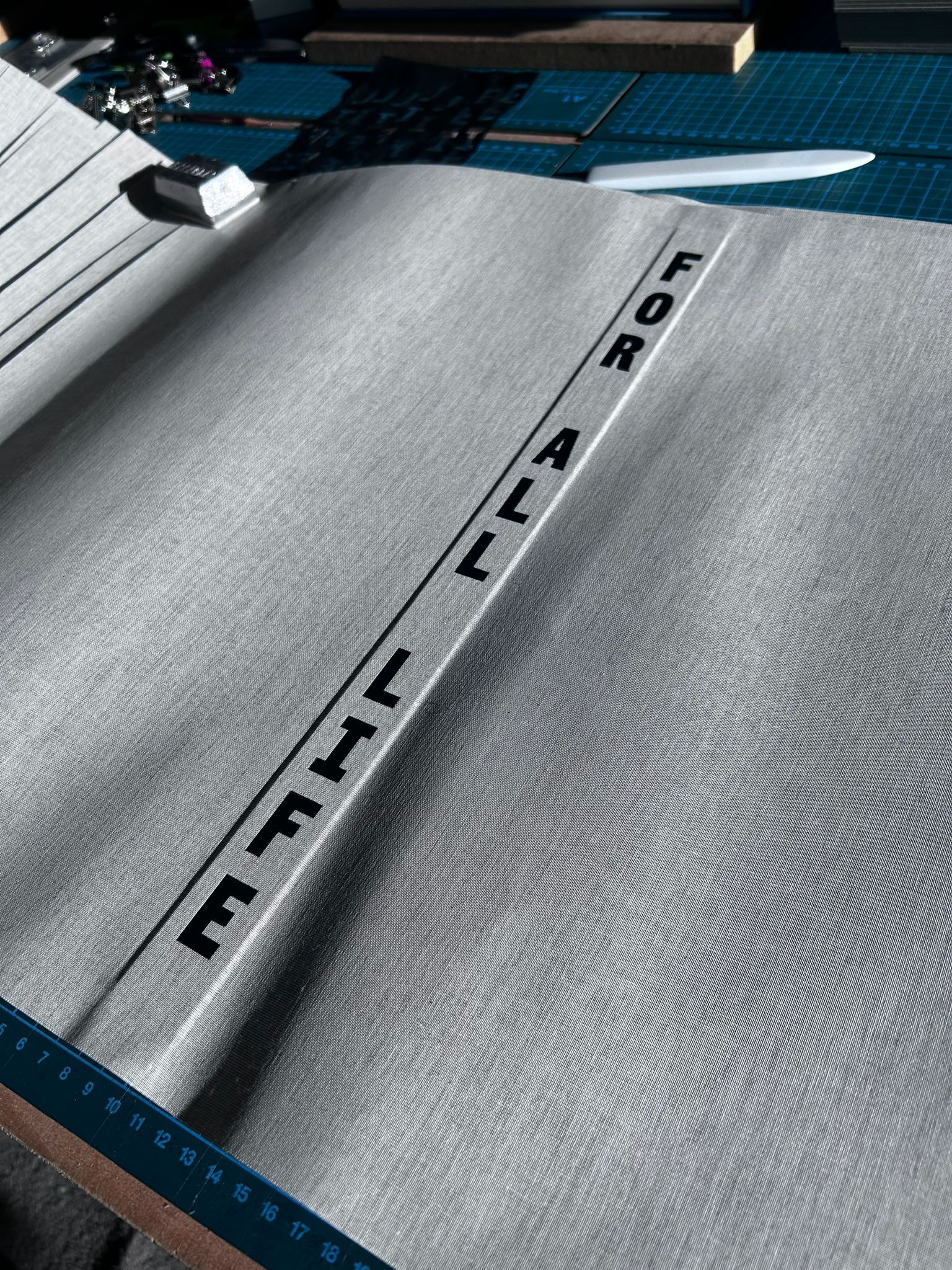 Designed & letterpress printed by Jamie Murphy. The book will be typeset in six line (one inch high) Carbon Mono, a new woodletter designed for this book by Bobby Tannam, cut from end grain beech by Scott Cameron.