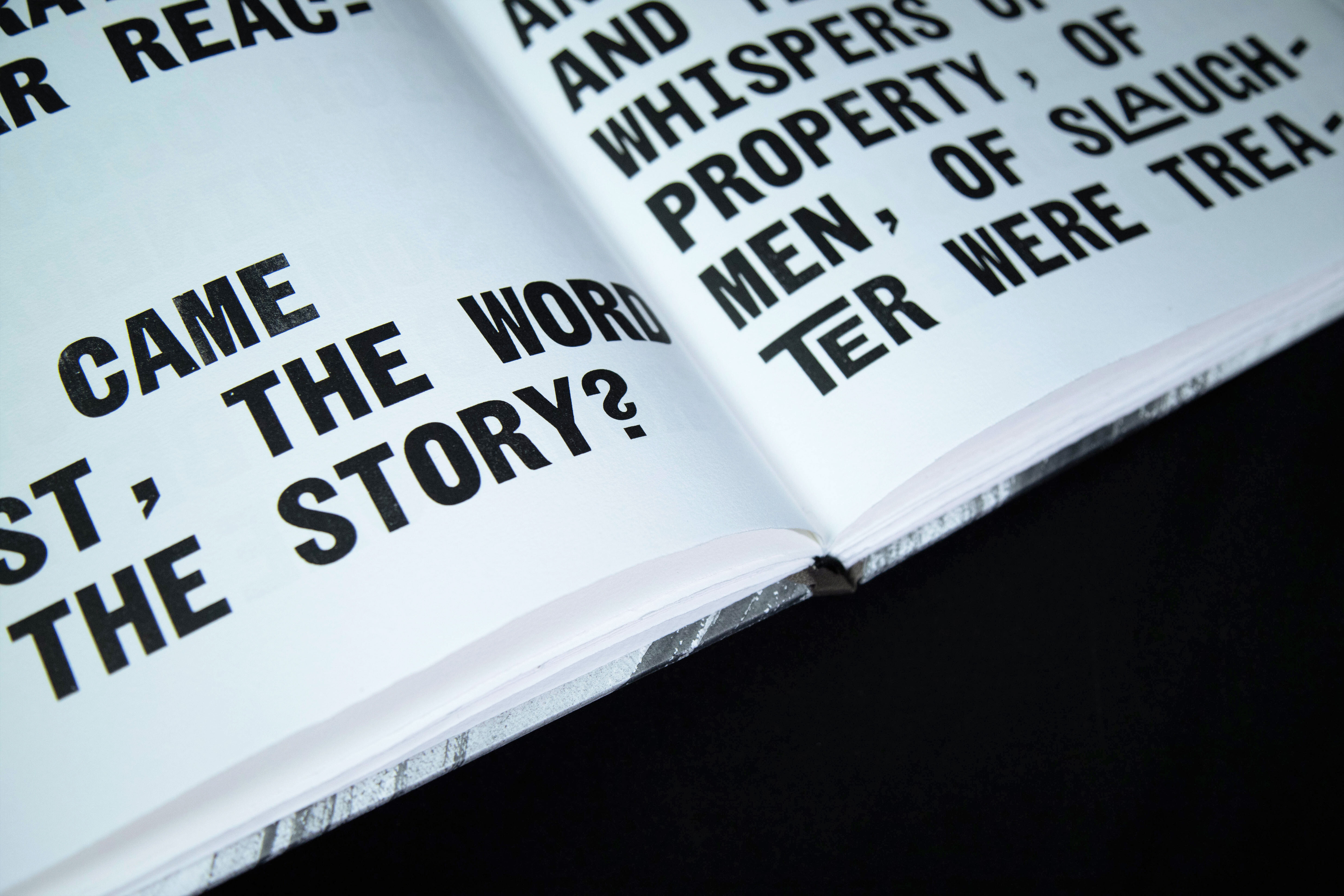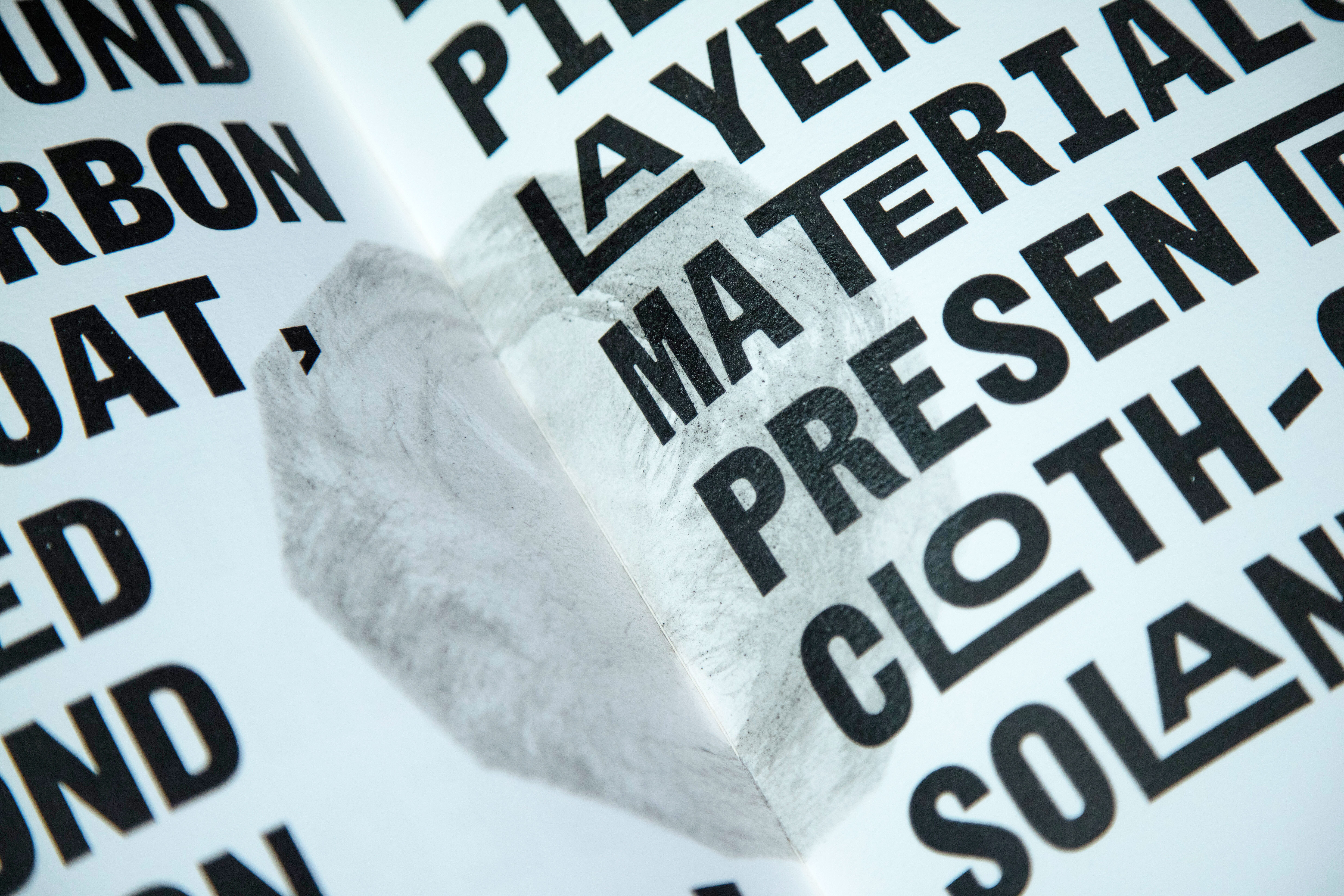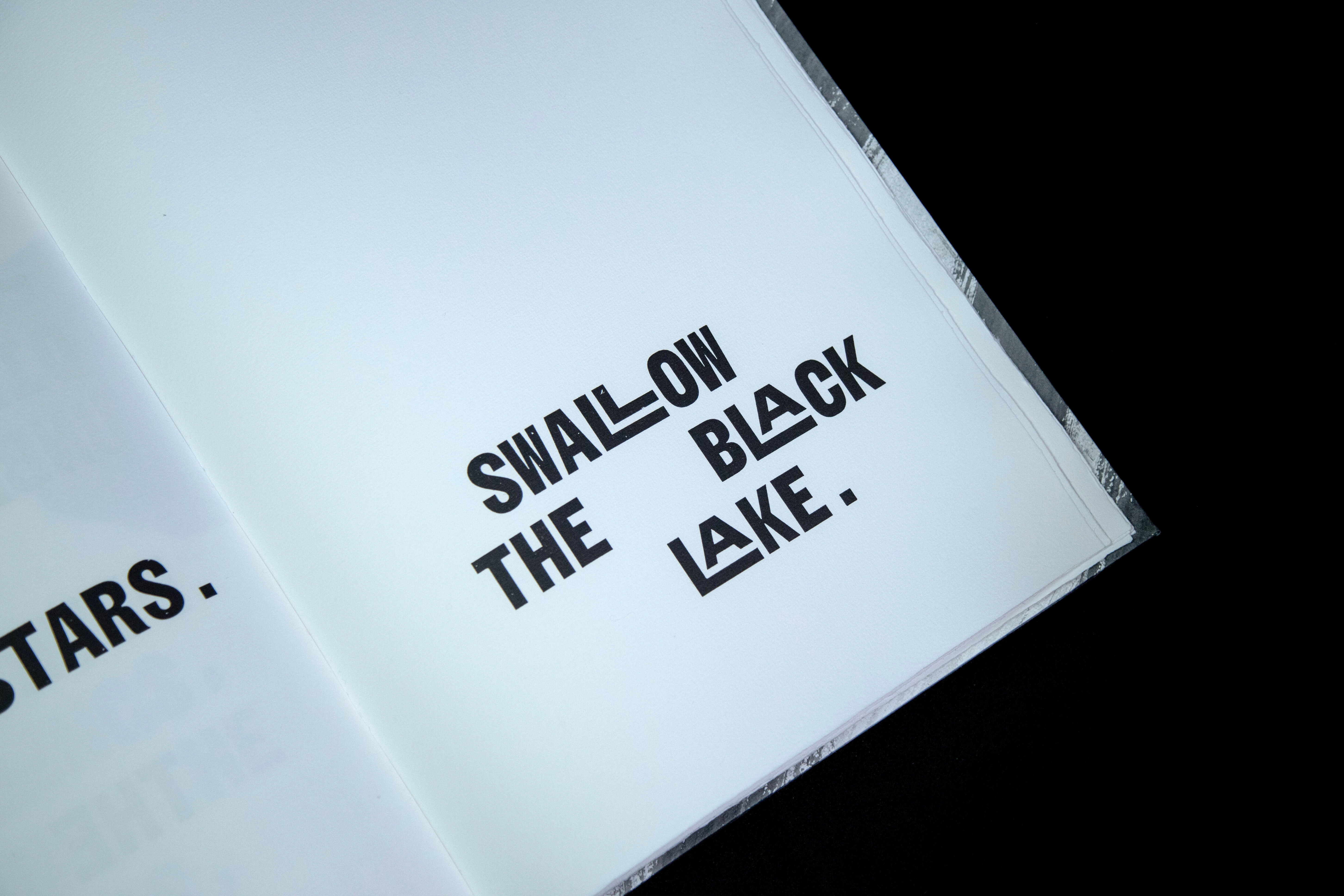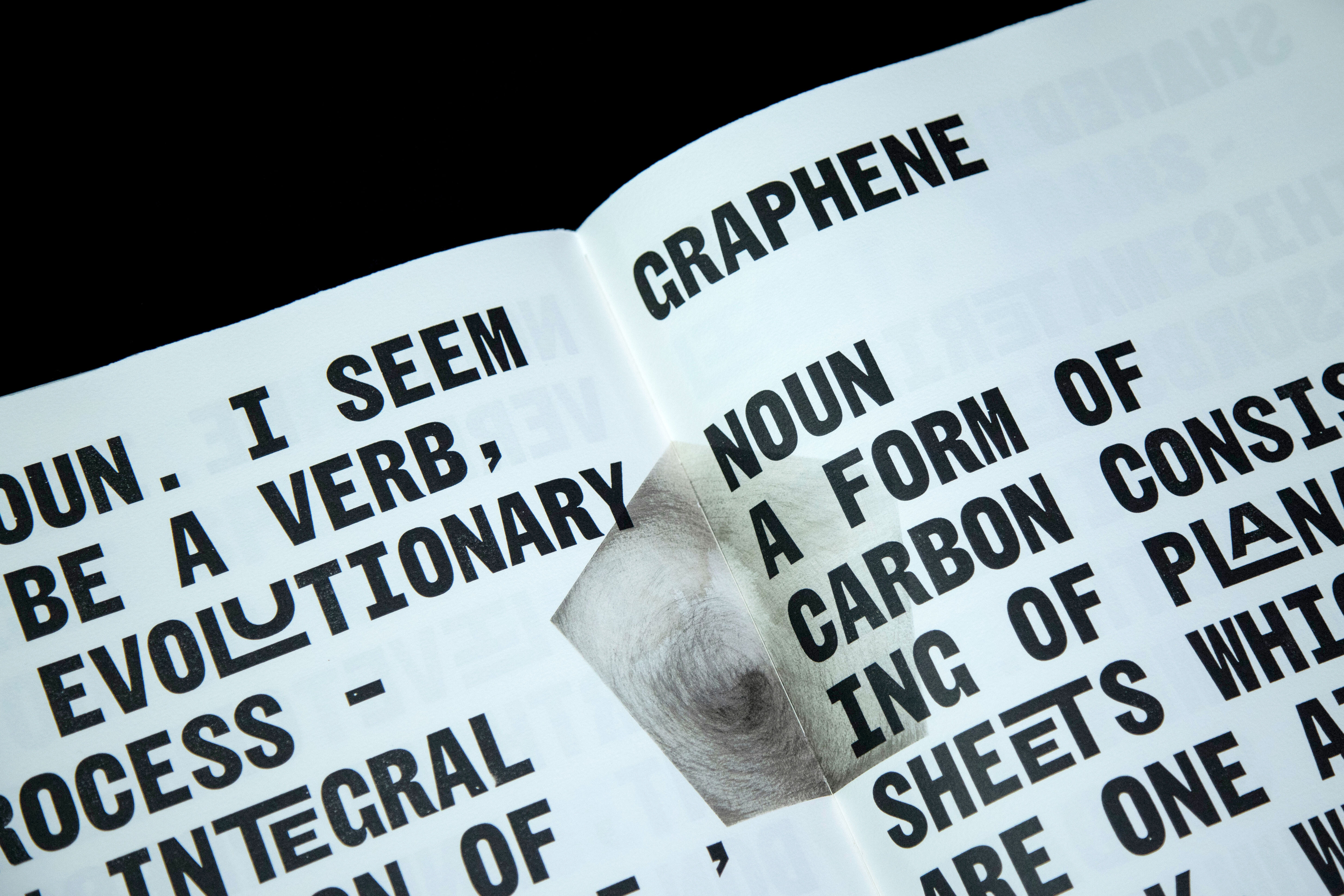 Inspired by the aesthetics of hand-typed scientific reports and woodtype printed protest posters, Jamie Murphy has interpreted the text by employing a new mono-spaced typeface developed specifically for this project in collaboration with type designer Bobby Tannam. In an effort to capture the materiality of the subject, evidence of carbon rich matter emerges throughout the book in the form of smoke, lampblack, soot, charcoal, peat, graphite and diamond.